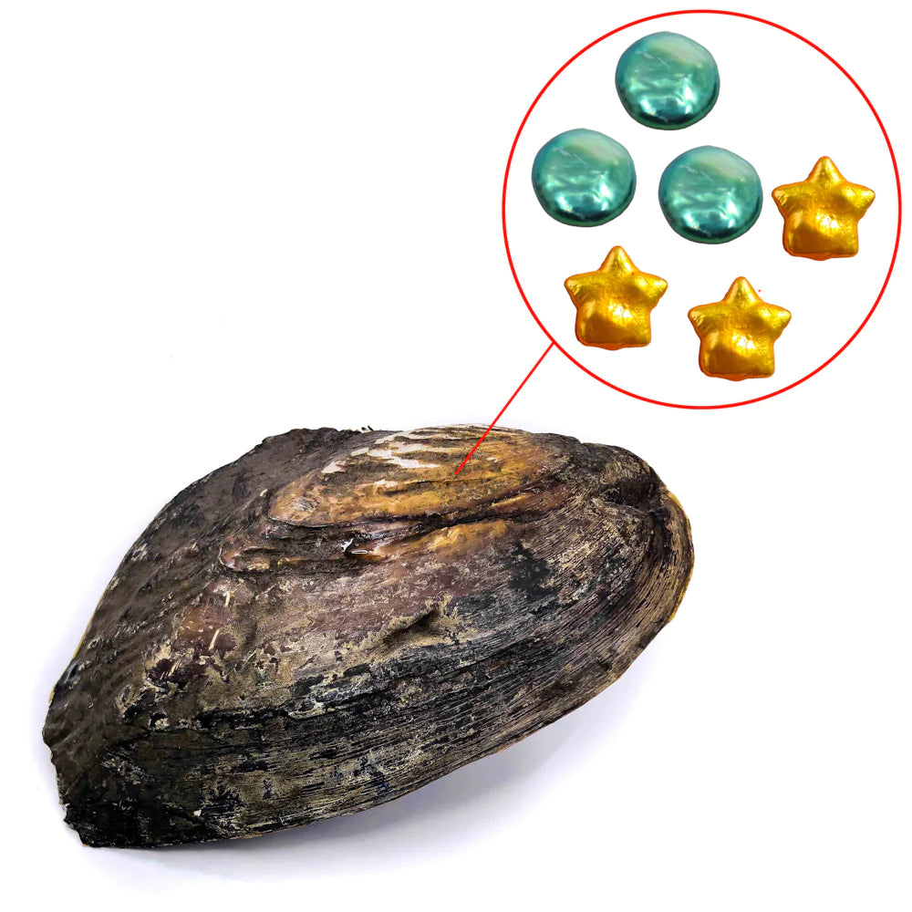• This is a MONSTER freshwater shell oyster with Natural Colored Pearls